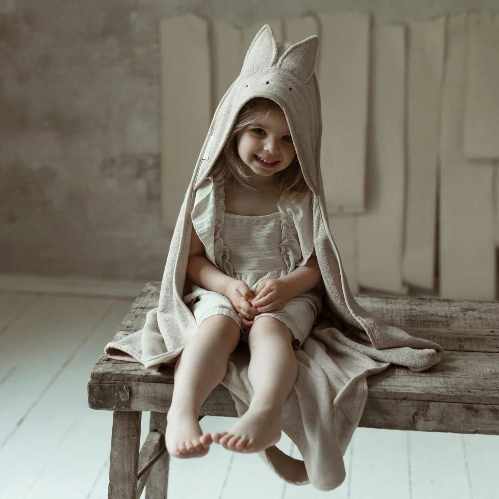 my memiの出産祝いにもおすすめのベビー用フードタオルは、うさぎの耳と表情が何とも言えない可愛らしさ。世界最高水準の安全な繊維製品であるOEKO-TEXS TANDARD 100認証を受けています。