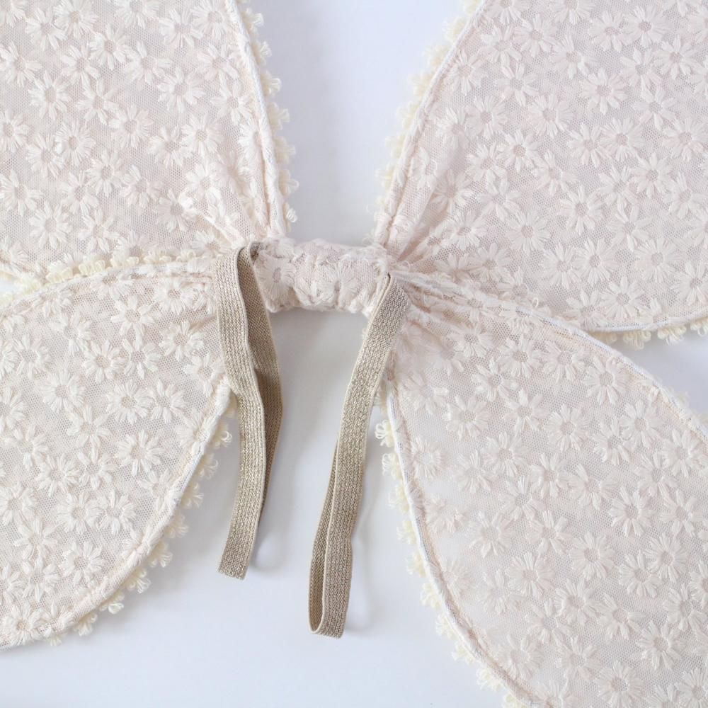 ごっこ遊びをグレードアップするバタフライウイングはバースデーフォトにもおすすすめのアイテム。同生地を使用した CROWN & WAND もプラスすると華やかさがさらにアップします。光沢のあるゴム製のアームストラップ付き。