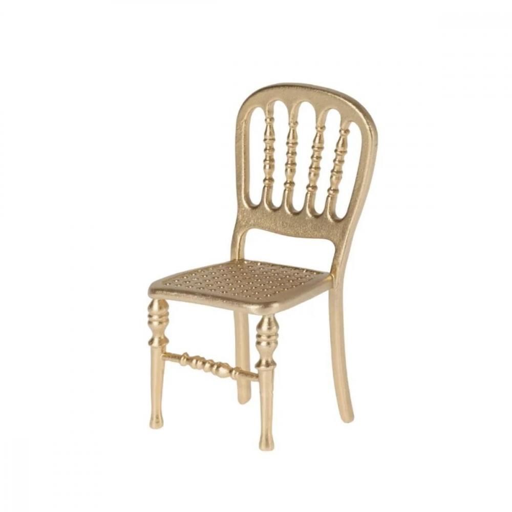 メイレグマウスの家族にぴったりサイズのヴィンテージ風のゴールドチェア。マウスサイズの全てのテーブルと一緒に収まる仕様です。