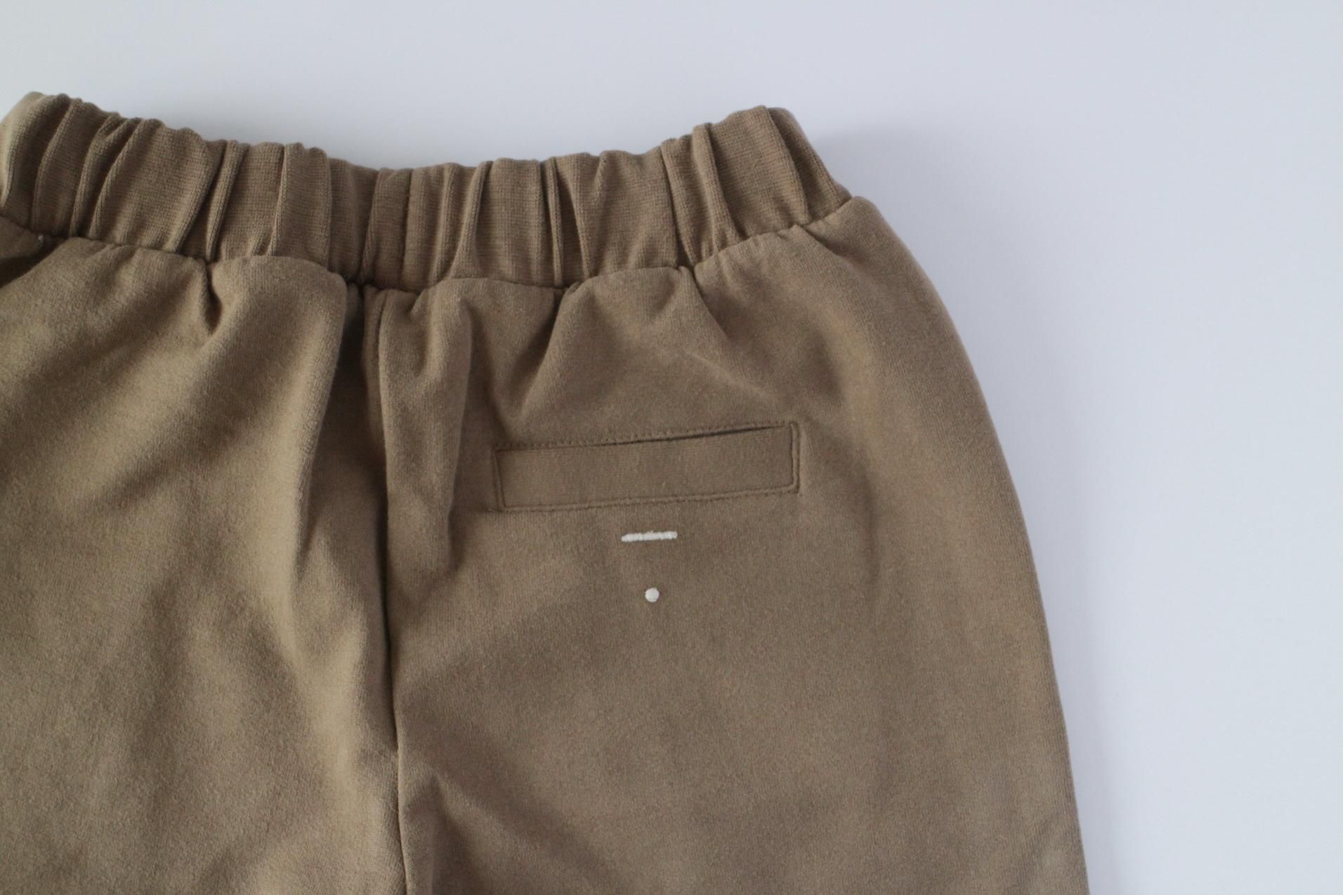 センターの切り替えラインと、裾にかけて細幅のシルエットが上品なジョガーパンツ。ポケットは両サイドに2つ、ヒップに1つあります。
